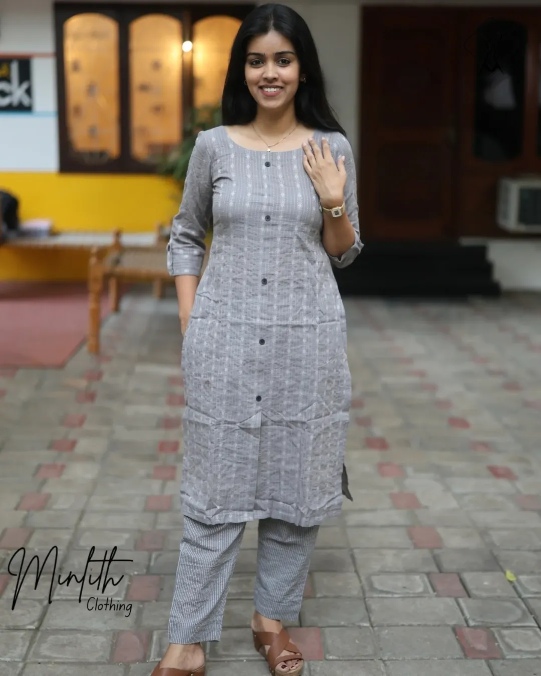 Keep it effortlessly stylish with this elegant grey cotton kurti set, designed for everyday comfort with a refined touch. Crafted from soft, breathable cotton, this set is perfect for all-day wear while maintaining a polished look.