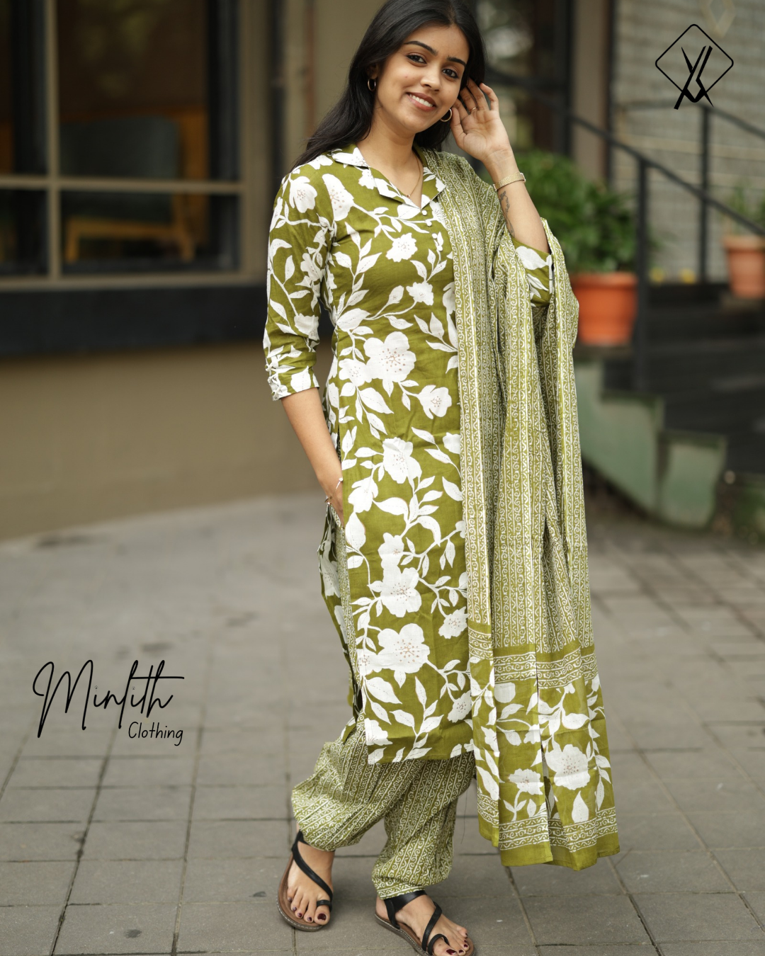 Paired with straight pants, the outfit offers a sleek and modern silhouette, while the pleated ankle-length design adds subtle movement and sophistication. Perfect for festive gatherings, casual celebrations, or elegant day wear, this ensemble beautifully blends classic detailing with contemporary style.