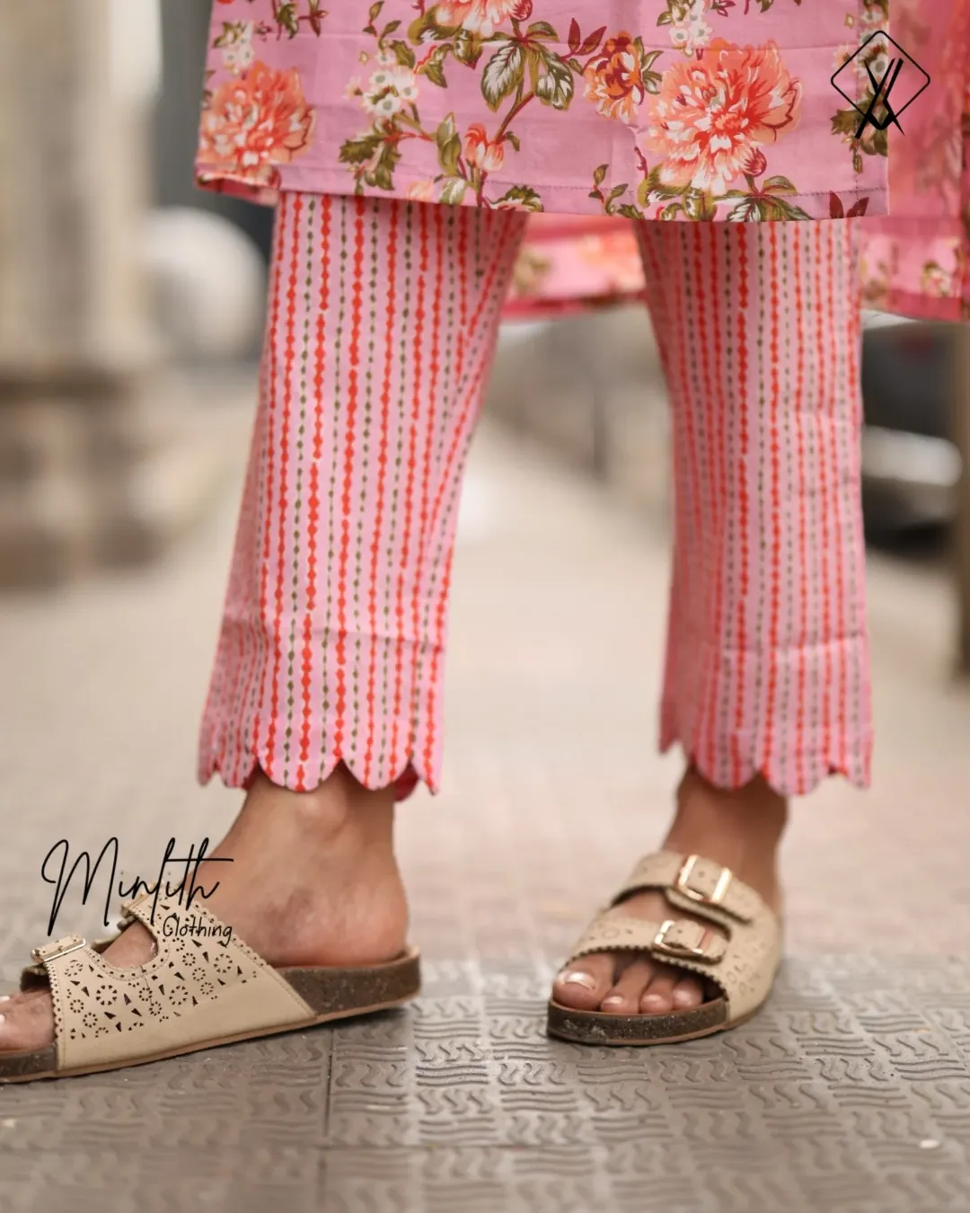 This cotton kurti set blends comfort with subtle design details. The kurti features a graceful U-shaped neckline enhanced with a delicate V-cut in the front, adding a refined and modern touch to the silhouette. The back is designed with a closed neckline, giving the outfit a neat and structured finish.
